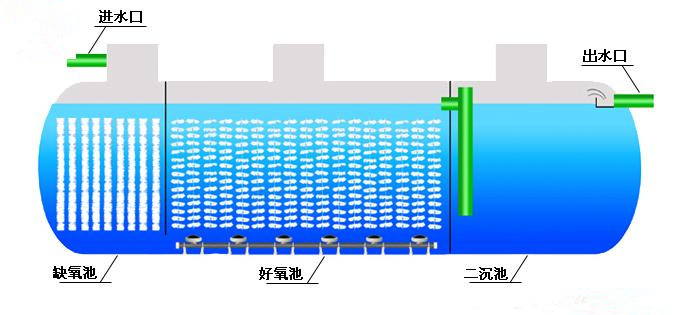 • 一體化污水處理設(shè)備 > 一體化污水處理設(shè)備是將一沉池、I、II級(jí)接觸氧化池、二沉池、污泥池集中一體的設(shè)備,并在I、II級(jí)接觸氧化池中進(jìn)行鼓風(fēng)曝氣,使接觸氧化法和活性污泥法有效的結(jié)合起來,節(jié)省了找人設(shè)計(jì)污水處理工藝和做基礎(chǔ)建設(shè)的繁瑣。